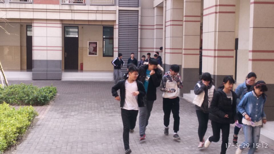 演习前,演练现场总指挥戴智毅副校长向全校师生阐述了演习步骤、以及灾情设定,进行处置的辅导;随着中小学联合演练确定的时间一到,校园里响起了急促的报警声——地震发生,演练开始,全校近二百多名学生在老师的引导下,面朝过道,蹲在身边的课桌下或头顶课本或是书包蹲在桌子边上的相对安全的三角区,进行地震时的紧急避险演练;后随着清脆的哨声——震后引发局部区域火灾逃生信号,同学们迅速弯着腰、排着队、用衣物毛巾捂着口鼻,按预定的逃生路线安全撤离。在整个疏散过程中,全体参与活动的师生严格按照应急疏散时的“不准嬉笑、不准推拉、不准蹲下、不准滞留、不准超越、不准超速、不准逆行”的七不准要求,自动形成两路纵队,下楼过程中,一队贴着墙,一队贴着楼梯扶手,让出了中间的救援通道,因为老师和学生组织有序、方法正确,无一例安全问题发生,取得了较好的效果。