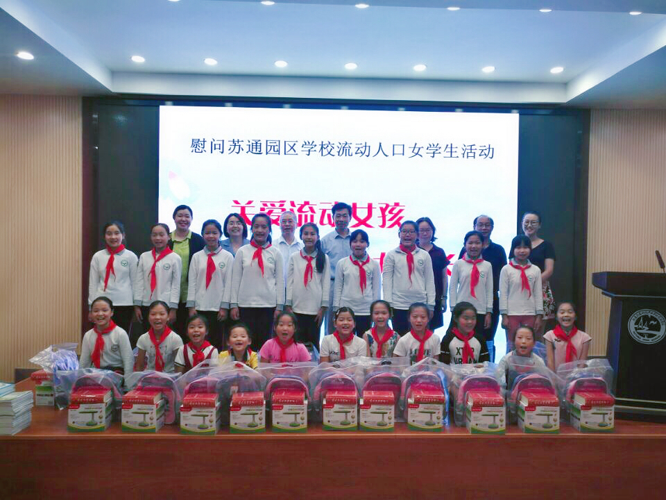 9月4日,晴空万里,南通市卫计委的领导们来到苏通园区实验学校,为我校20名流动人口女学生送来温暖。