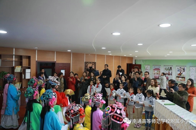 在校长室帅宁华校长,教导处邱晓春主任的陪同下,考察团的校长们参观了大生园、张謇事迹陈列馆、大生娃课间书吧、学生阅览室、教师阅览室、心理咨询室、童童电视台、女工传习所、陶艺室、古琴室等校园特色室场,观摩了我校富有“南通味儿”的选修课程展示,对学校在普及艺术特色课程的基础上选拔特长人才的做法赞不绝口。