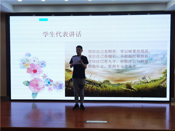 落红不是无情物,化作春泥更护花。典礼上,施丹丹老师深情款款地发言: “忘不了课堂上你们专注的神情、睿智的解答,忘不了中考体育场上你们的奋力拼搏……”,如数家珍般将孩子们的点点滴滴一一叙述,让孩子们仿佛又回到了美好的课堂;“业精于勤而荒于嬉,行成于思而毁于随”、“要把感恩当成一种责任”这是施老师给孩子们上的最后一堂班会课,最后,施老师向毕业生赠言,祝福同学们前程似锦、未来可期!