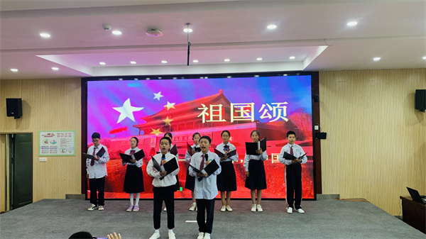 最后全体师生共同唱响了《我和我的祖国》,在优美的旋律中、在红色的海洋中,在澎湃的心潮中完美落下了帷幕。