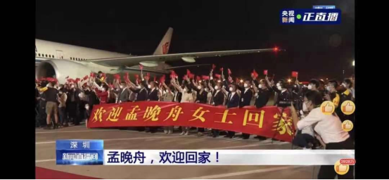“这里是中国深圳宝安机场,祖国永远是你最强大的依靠!孟晚舟女士,欢迎归来!”这是9月25日晚,深圳宝安国际机场塔台朝孟晚舟一行的温暖喊话。