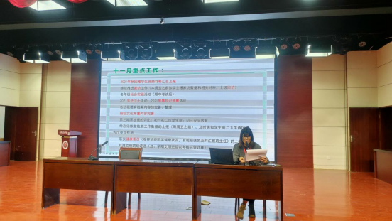 首先,曹主任主任对10月班主任工作进行简要回顾,包括班级常规管理、劳动教育及家访活动安排等内容,不仅肯定了各班主任的常规管理工作效果,并对各班主任的辛苦付出表示感谢。