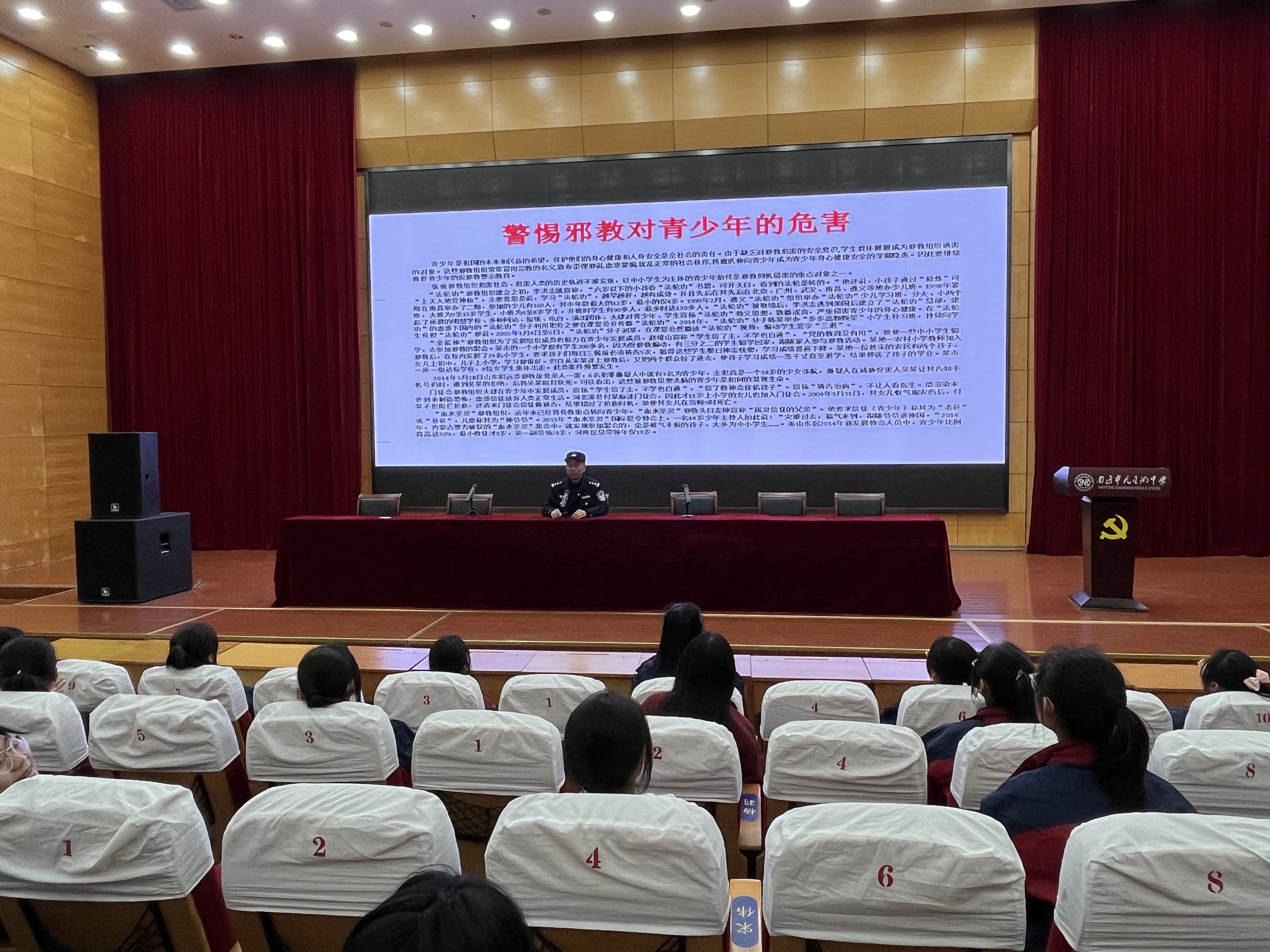 讲座以“崇尚科学 反对邪教”为主题,韩警官用通俗的语言、灵活的方式和生动的事例向同学们讲解了“什么是邪教?”“为什么要反对邪教”以及“我们该如何防范邪教”等内容,让同学们更加直观地认识到邪教的危害,认清邪教组织的本质,远离邪教。讲座引导同学们树立科学的世界观、人生观和价值观,学会用正确的立场、观点和方法去分析和认识事物,破除迷信,普及科学知识,对邪教言论做到不听、不看、不传、不信。