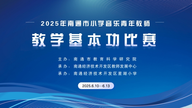 为深化小学音乐教育教学改革,夯实青年教师专业素养,提升课堂教学能力。2025年6月10日至13日,由南通市教育科学研究院主办的2025年南通市小学音乐青年教师教学基本功大赛一轮选拔在南通经济技术开发区星湖小学成功举办。