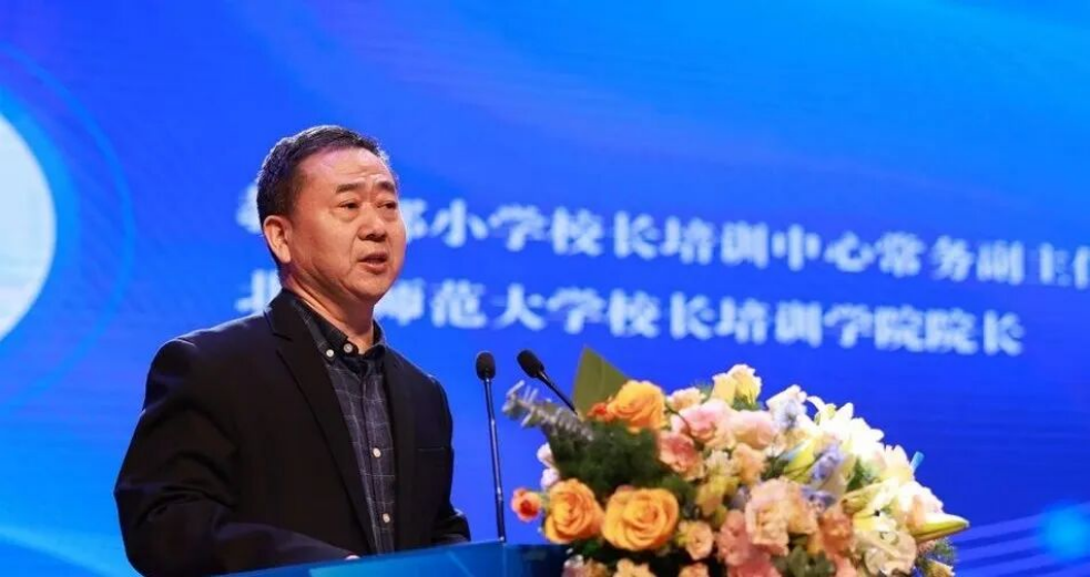 教育部小学校长培训中心常务副主任、北京师范大学校长培训学院院长陈锁明致辞。他指出,在推进中国式教育现代化的背景下,校长需要具有持经达变、寸心如海、胸怀世明的变革领导力。他期待有更多的校长能够追求中国式的管理之道,建立中国式的文化自信管理体系,为更多的学校提供更好的样板和经验。