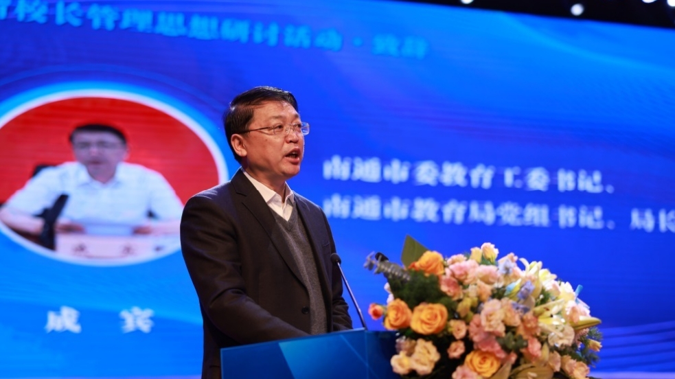 南通市委教育工委书记、党组书记、南通市教育局局长成宾致辞。他简要介绍了近年来南通加强优秀校长队伍建设的创新举措。他认为,这次研讨活动对参会校长来说,是一次管理思想的再提升,也是一次办学实践的再出发。他希望大家要好好珍惜难得的学习机会,真正做到学有所得,学以致用。