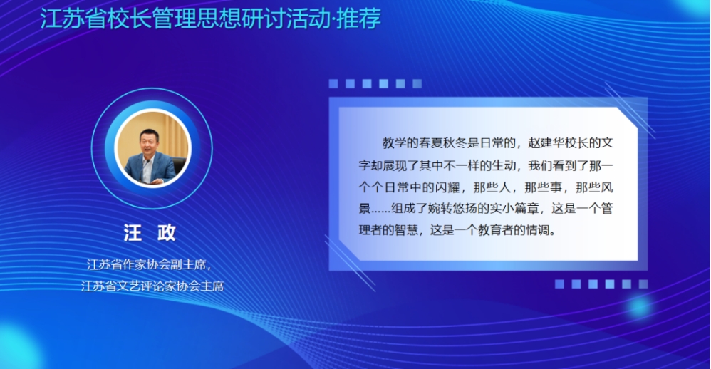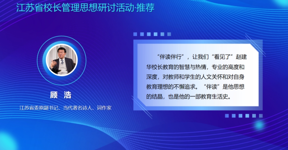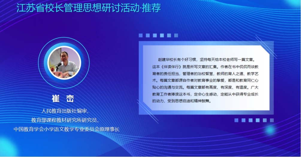 工作人员现场宣读了江苏省委原副书记顾浩、中国教育学会名誉会长顾明远、中国教育学会小学语文教学专业委员会原理事长崔峦和江苏作家协会副主席、江苏省文艺评论家协会主席汪政发来的新书推荐语。