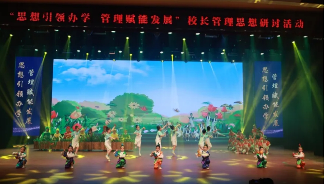实小集团师生以《伴行,在斑斓的星辉里》为主题,通过歌舞、情景剧、民乐合奏、水鼓舞、音诗画、Rap、微沙龙等多种形式,全面展示了集团化办学背景下师生共赴精神灿烂的美好气象。近一个半小时的情景讲述,强大的视觉冲击力,让与会代表享受了一场视觉大餐、创意盛宴。
