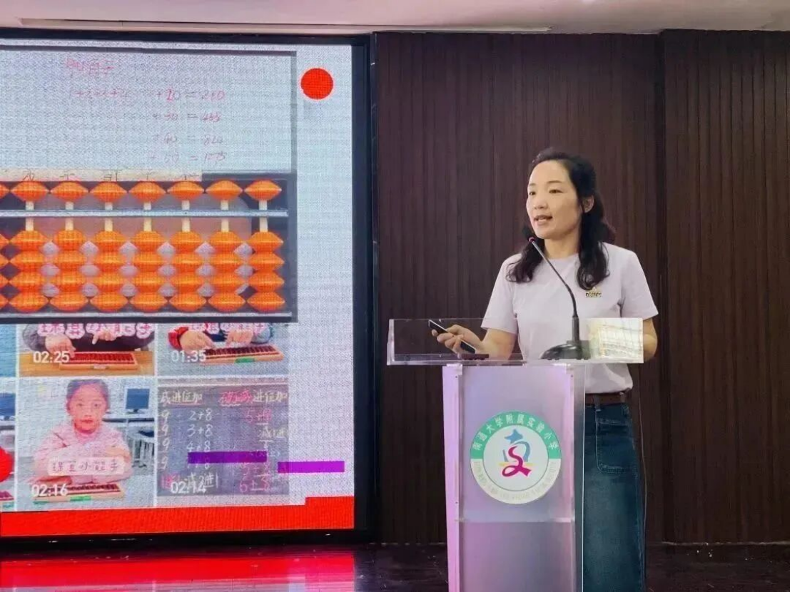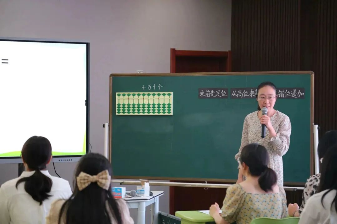 新河校区执行校长朱剑致辞 课堂观摩 珠动生慧,来自联盟学校的6位教师展示了6节精彩纷呈的课。她们的课堂设计巧妙,探究有法,真正实现思维碰撞,素养提升。 南通市经济技术开发区实验小学教育集团 缪丽花 南通市小海小学 陈小美 扬州宝应县实验小学 刘露 南通市如东县丰利小学 李阳 南通市经济技术开发区实验小学教育集团 翟露露 南通市经济技术开发区实验小学教育集团 缪欣廷 瞧!小小龙娃训练有素,自信大方,乐于分享,表达合理。执教老师、听课老师们频频点头,无不称赞。 主题报告 实小集团珠心算总教练杨晓林做了《聚焦“双减”,优化珠心算课堂练习设计》的主题报告。报告从课始、课中、课尾三个不同时段,结合具体课例,详细讲述如何优化珠心算课堂练习设计,报告有温度、有高度、有深度,令人深思。 教材解读 省珠心算种子教师徐宝琴,杨美娟分别对珠心算乘、除法基础知识及教材进行了解读,老师们一边专注地听着,一边认真地记着笔记,还不时地拨拨算盘。 经验分享 种子教师经验交流由江苏省特级教师、镇江市丹徒区青少年活动中心主任钱志平主持。不同的老师讲述着不同的故事,不同的故事呈现了不同学校的老师对珠心算教育实验的共同的情怀和孜孜不倦的追求。 微格教学 微格教学由常熟市塔前小学校长顾培华主持。种子教师和骨干教师们抽签确定了微格教学的课题。六个小组六个课题,老师们精心设计,抱团研究,在很短的准备时间里明重点、破难点、思框架、理细节、备道具、精展示。种子教师精彩到位的点评以及最佳组合和最优组合的评选、颁奖将活动推向了高潮。 1 2 3 4 5 6 领导总结 活动最后,江苏省中小学教学研究室主任郭庆松充分肯定了本次活动并提出三点思考,为我们今后的研究指明了方向。 江苏省珠算协会秘书长陈国忠对本次活动高度赞赏,认为本次活动实用性强,希望老师们活学活用,肩负起辐射传承的作用。 “博观而约取,厚积而薄发”。为期两天的研讨活动,围绕“聚焦双减,优化课堂练习设计”的主题,既有课堂实践层面的示范研讨,又有专家理论层面的高度引领,为珠心算实验教学工作明确了目标、指明了方向,相信未来的珠心算实验一定会在教学探索的道路上越走越好! END 珠算联盟 研讨 文字 | 王茜茜 图片 | 杨晓林 缪丽花 编辑 | 胡梦娇 审核 | 郁菊香 南通开发区实验小学教育集团