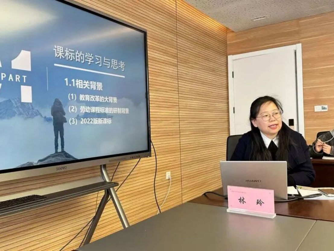 明标方能致远,善思砥砺前行。为实现教学研究共同体的协同研究,推进南通市劳动教育与综合实践课程研究的探索,下午,启东市教师发展中心林玲老师为大家带来主题为《聚焦新课标,把握劳动育人新方向》的讲座,解读《劳动与技术教育课程标准》,让老师们明晰课程内涵,并向大家介绍了启东市在劳动教育实践中的点滴探索。