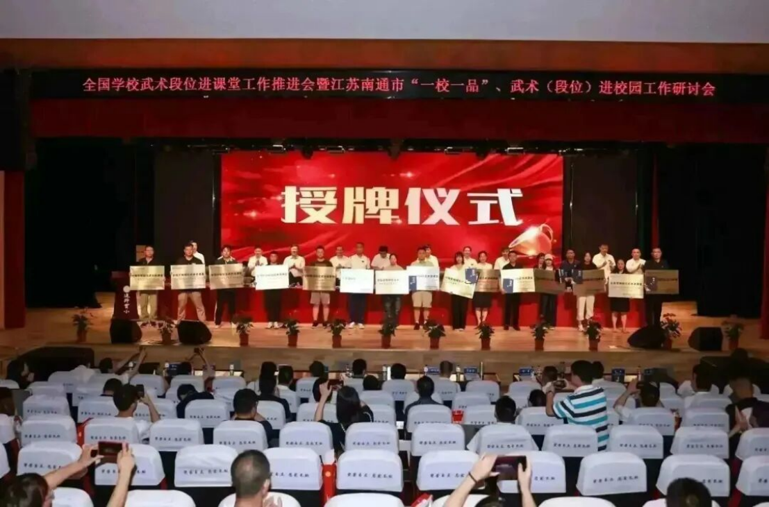 段位武术进课堂 “一校一品”真闪亮!本次会议的圆满落幕,促进了段位武术进课堂规范化标准化发展,推动了中国段位制在校园的成长,同时悄然间擦亮了南通市“一校一品”项目品牌!