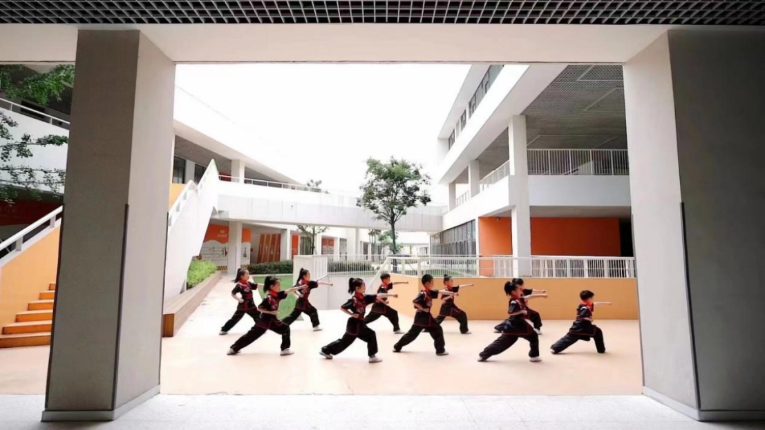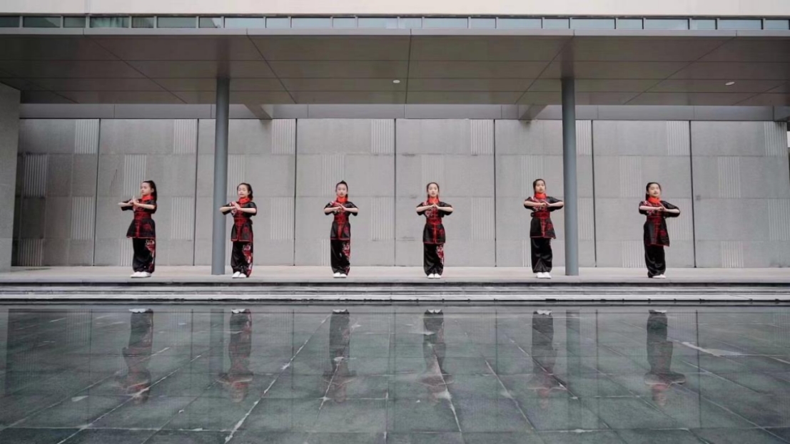 参会人员观看了龙腾校区学生“一校一品”武术操的表演。孩子们矫健的身姿、积极进取的精神风貌,使在场的来宾们共享视觉盛宴。