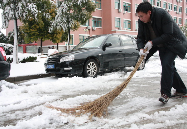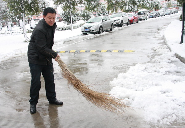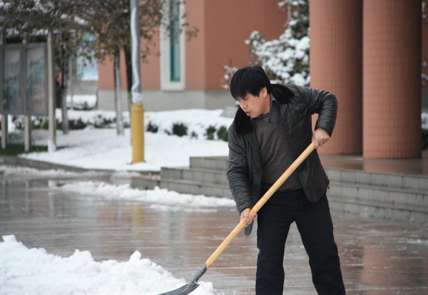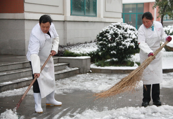 风雪校园路 可敬扫雪人